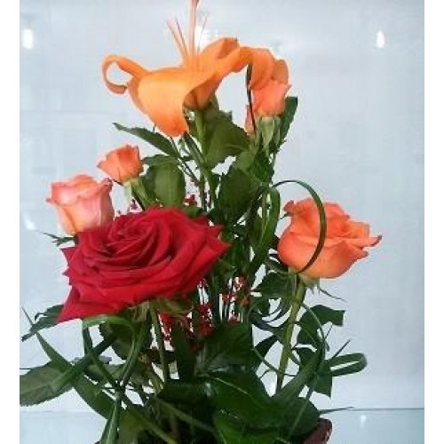 Buchet asortat trandafiri si crin