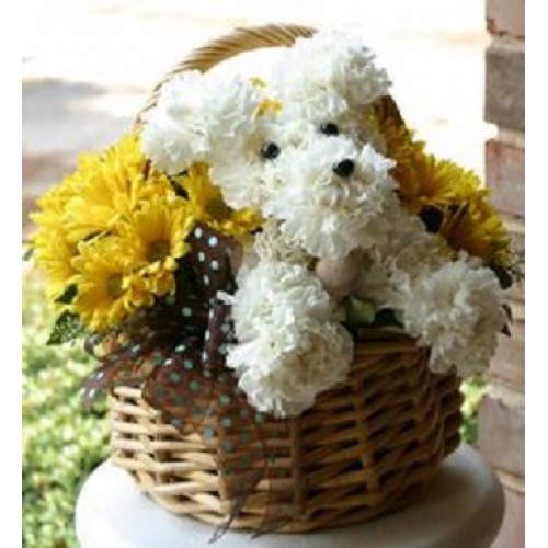 Cos cu un catelus din flori naturale