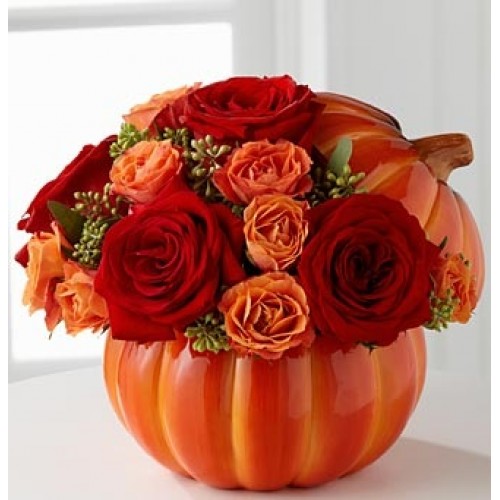 Dovleac umplut cu trandafiri si minirosa